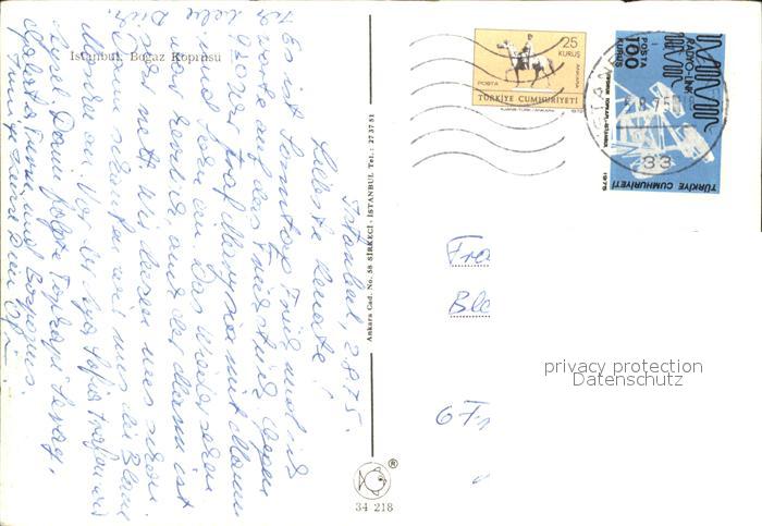 old postcard Istanbul Constantinopel Bosporus-Bruecke postalisch gelaufen Erhaltung siehe scans