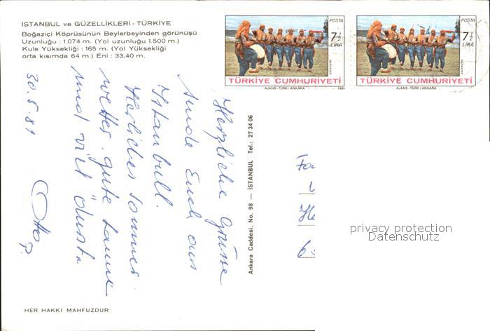 old postcard Istanbul Constantinopel Bosporus-Bruecke postalisch gelaufen Erhaltung siehe scans