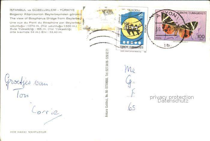 old postcard Istanbul Constantinopel Bosporusbruecke postalisch gelaufen Erhaltung siehe scans