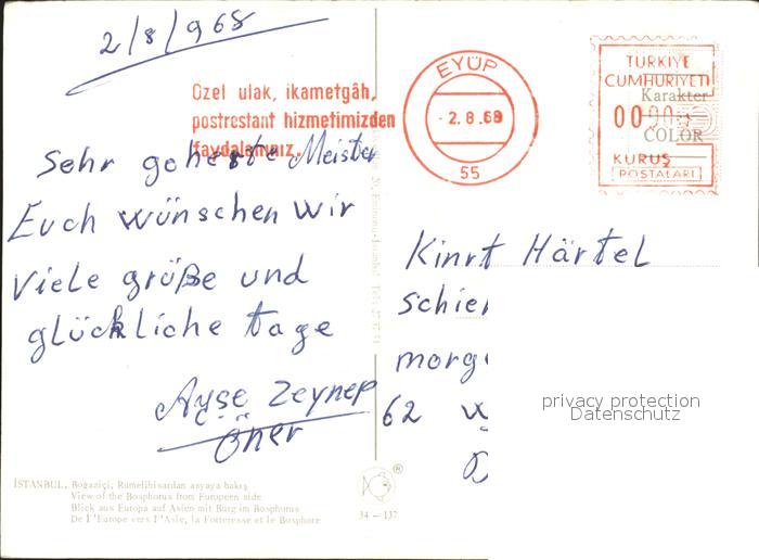 old postcard Istanbul Constantinopel Burg Bosphorus Schiff postalisch gelaufen Erhaltung siehe scans