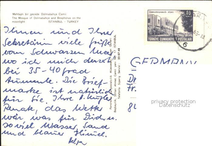 old postcard Istanbul Constantinopel Dolmabahce Moschee Bosphorus postalisch gelaufen Erhaltung siehe scans