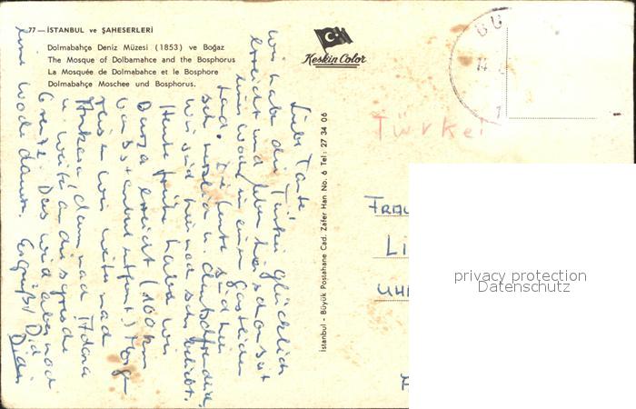 old postcard Istanbul Constantinopel Dolmabahce Museum Bosphorus postalisch gelaufen Erhaltung siehe scans
