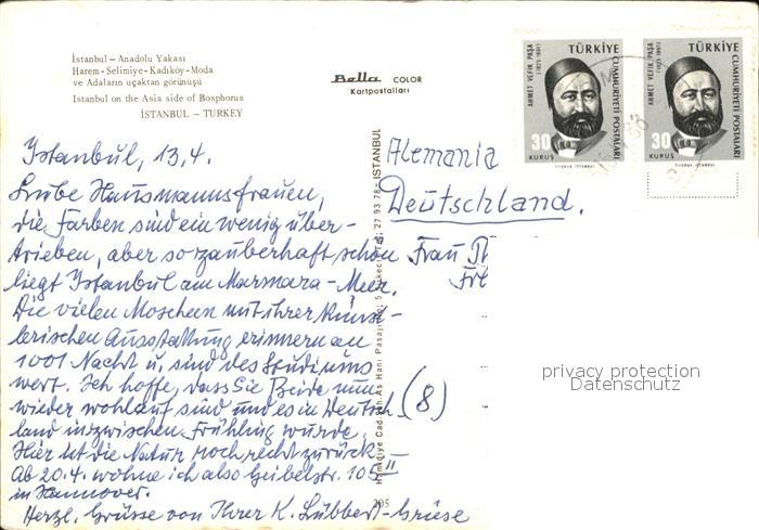 old postcard Istanbul Constantinopel Fliegeraufnahme Asia side Bosphorus postalisch gelaufen Erhaltung siehe scans