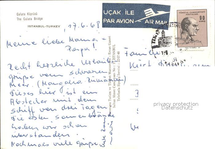 old postcard Istanbul Constantinopel Galata Bruecke Dampfer Boote postalisch gelaufen Erhaltung siehe scans