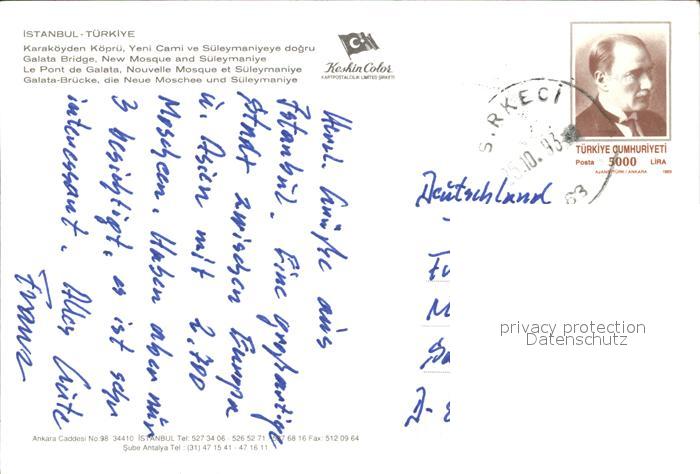 old postcard Istanbul Constantinopel Galata Bruecke neue Moschee Sueleymaniye Dampfer postalisch gelaufen