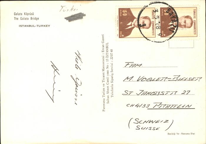 old postcard Istanbul Constantinopel Galata Koepruesue Bruecke Schiff postalisch gelaufen Erhaltung siehe scans