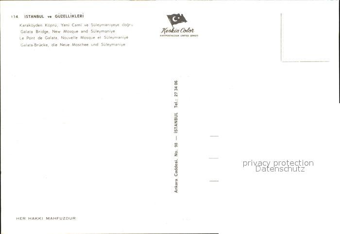 Istanbul Constantinopel Galatabruecke Neue Moschee Sueleymaniye Moschee Passagierschiff postalisch nicht gelaufen Erhaltung siehe scans