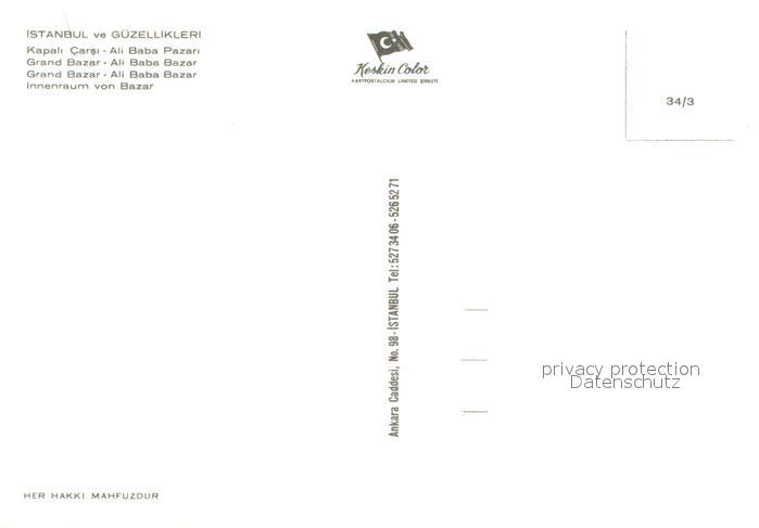 Istanbul Constantinopel Grand Bazar Ali Baba Bazar postalisch nicht gelaufen Erhaltung siehe scans [FriedD77]