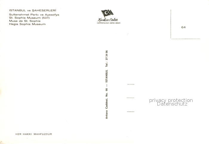 Istanbul Constantinopel Hagia Sophia Museum postalisch nicht gelaufen Erhaltung siehe scans [WerneD78]