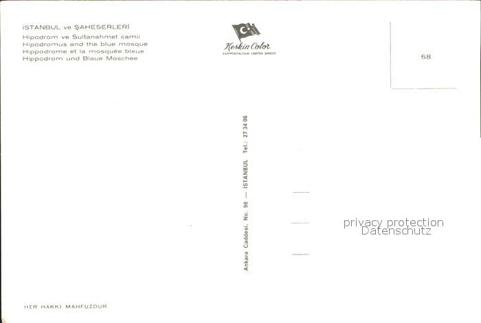 Istanbul Constantinopel Hippodrom Blaue Moschee postalisch nicht gelaufen Erhaltung siehe scans