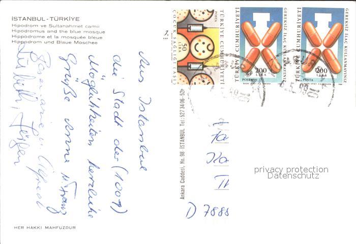 old postcard Istanbul Constantinopel Hippodrom Blaue Moschee postalisch gelaufen Erhaltung siehe scans