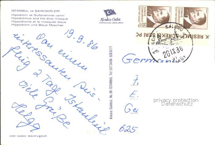 old postcard Istanbul Constantinopel Hippodrom Blaue Moschee postalisch gelaufen Erhaltung siehe scans
