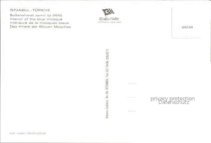 Istanbul Constantinopel Inneres Blaue Moschee postalisch nicht gelaufen