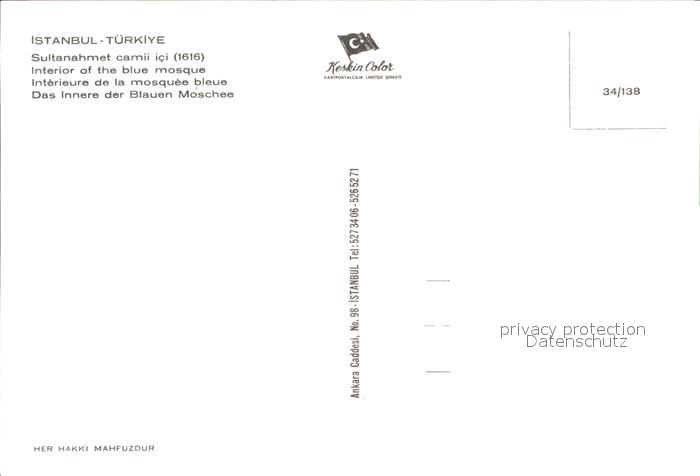 Istanbul Constantinopel Inneres Blaue Moschee postalisch nicht gelaufen Erhaltung siehe scans