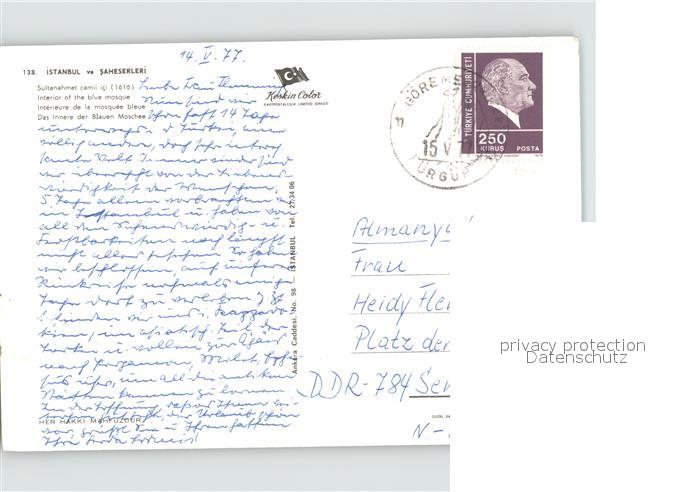 old postcard Istanbul Constantinopel Inneres der Blauen Moschee postalisch gelaufen Erhaltung siehe scans