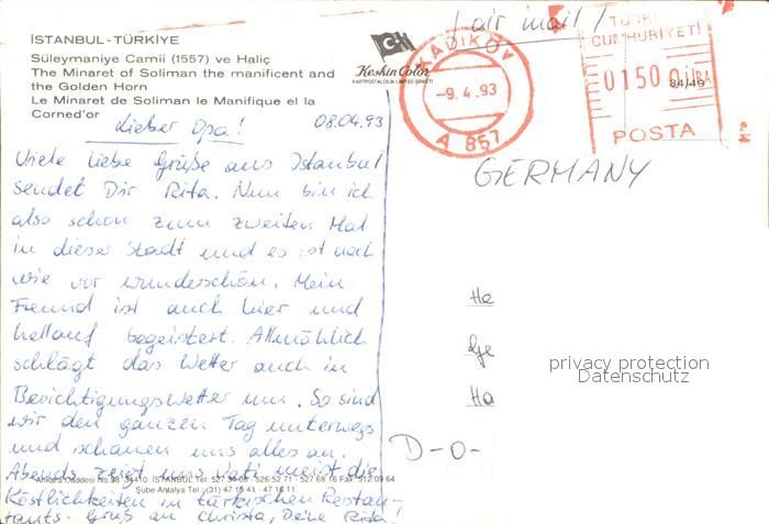 old postcard Istanbul Constantinopel Minaret Soliman Manifique Corned or postalisch gelaufen