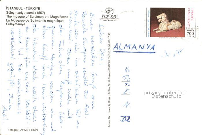 old postcard Istanbul Constantinopel Mosque Solimon postalisch gelaufen
