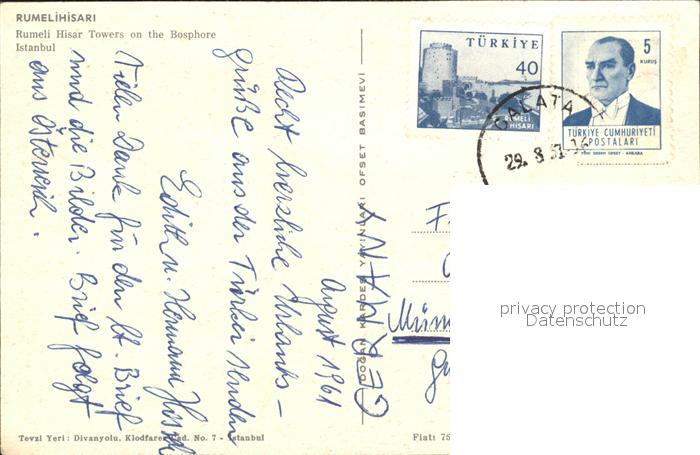 old postcard Istanbul Constantinopel Rumeli Hisar Towers on the Bosphore postalisch gelaufen Erhaltung siehe scans