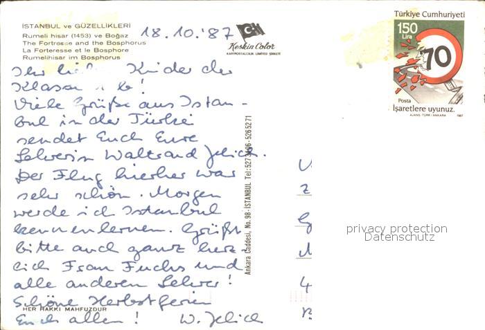 old postcard Istanbul Constantinopel Rumelihisar Bosphorus postalisch gelaufen Erhaltung siehe scans