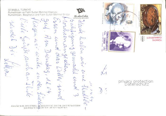 old postcard Istanbul Constantinopel Rumelihisari Bosphorus and Fatih Sultan Mehmet Bridge postalisch gelaufen Erhaltung siehe scans