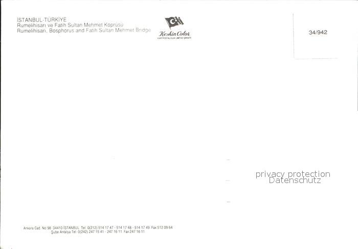 Istanbul Constantinopel Rumelihisari Bosphorus and Fatih Sultan Mehmet Bridge postalisch nicht gelaufen Erhaltung siehe scans