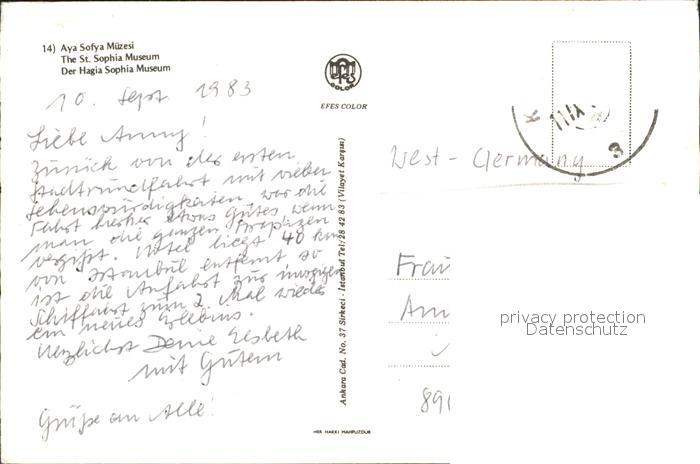 old postcard Istanbul Constantinopel St. Sophia Museum postalisch gelaufen Erhaltung siehe scans