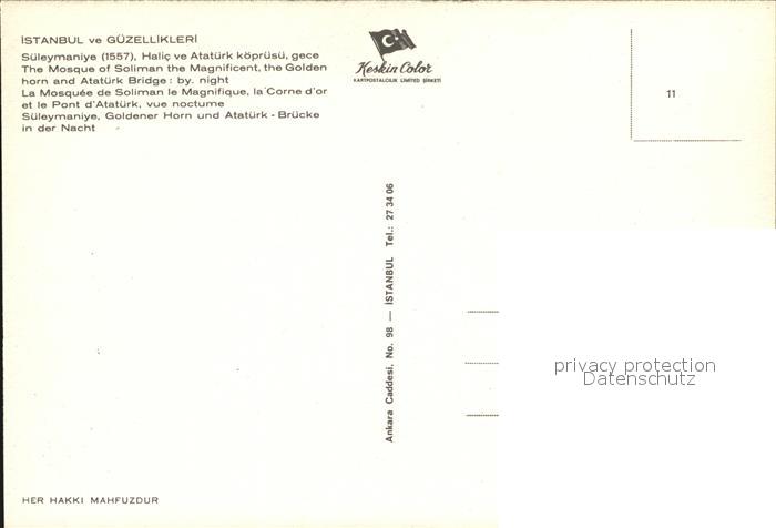 Istanbul Constantinopel Sueleyman Moschee Goldenes Horn Atatuerk Bruecke Nachtaufnahme postalisch nicht gelaufen Erhaltung siehe scans