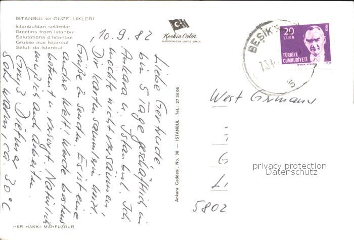 old postcard Istanbul Constantinopel Sueleymaniye Dolmabahce Sarayi Anadolu Hisari Ayasofya postalisch gelaufen