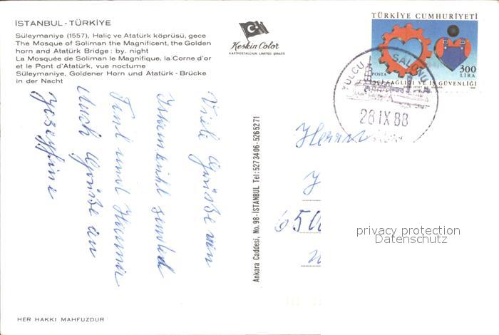 old postcard Istanbul Constantinopel Sueleymaniye Golden Horn Atatuerk Bruecke postalisch gelaufen Erhaltung siehe scans