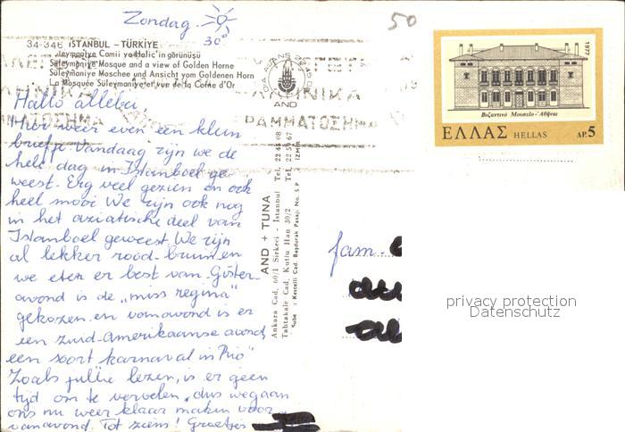 old postcard Istanbul Constantinopel Sueleymaniye Moschee Ansicht vom Goldenen Horn postalisch gelaufen Erhaltung siehe scans