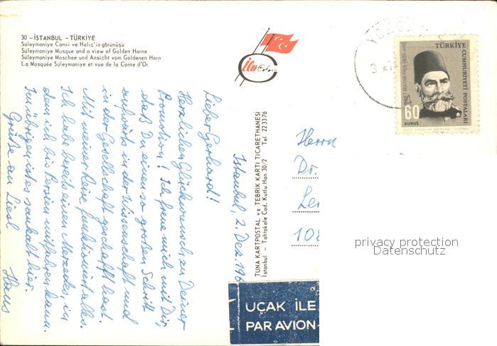 old postcard Istanbul Constantinopel Sueleymaniye Moschee Golden Horn postalisch gelaufen Erhaltung siehe scans