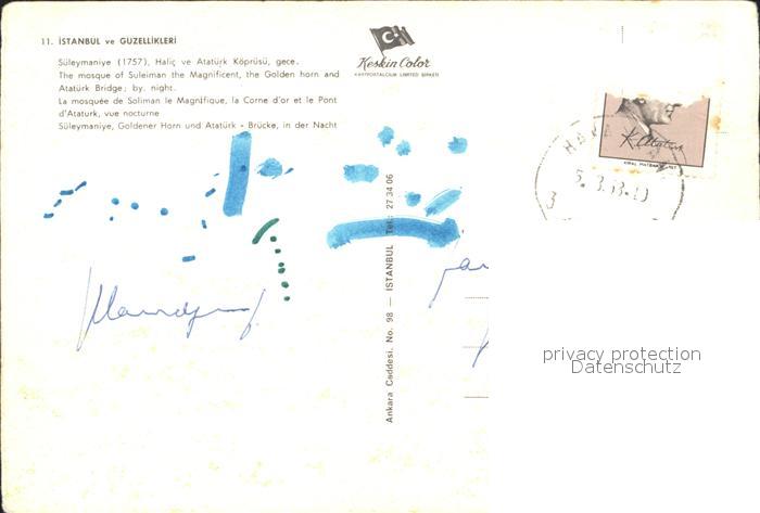 old postcard Istanbul Constantinopel Sueleymaniye Moschee Goldenes Horn Atatuerk Bruecke Nachtaufnahme postalisch gelaufen Erhaltung siehe scans