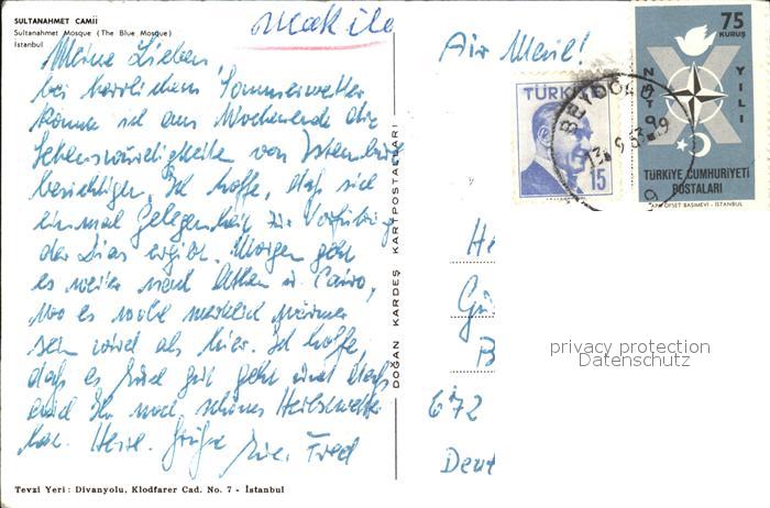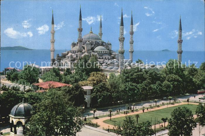 old postcard Istanbul Constantinopel Sultanahmet Camii Blaue Moschee postalisch gelaufen Erhaltung siehe scans