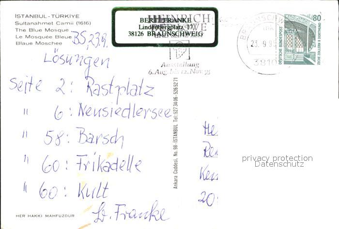 old postcard Istanbul Constantinopel Sultanahmet Camii Blaue Moschee postalisch gelaufen Erhaltung siehe scans