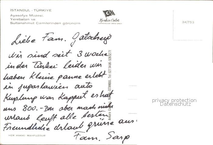 Istanbul Constantinopel Sultanahmet Camilerlinden Segelboot postalisch nicht gelaufen