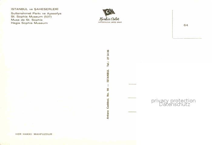 Istanbul Constantinopel Sultanahmet Parki ve Ayasofya Hagia Sophia Museum postalisch nicht gelaufen Erhaltung siehe scans [FriedD77]