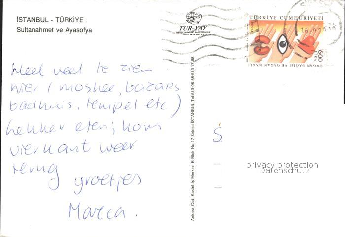 old postcard Istanbul Constantinopel Sultanahmet ve Ayasofya postalisch gelaufen Erhaltung siehe scans