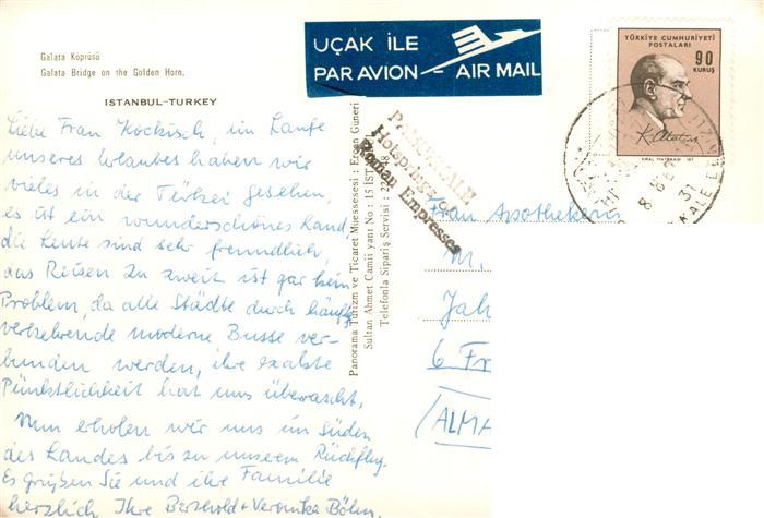 old postcard Istanbul Constantinopel TK Galata Bridge on the Golden Horn postalisch gelaufen Erhaltung siehe scans [WerneD78]