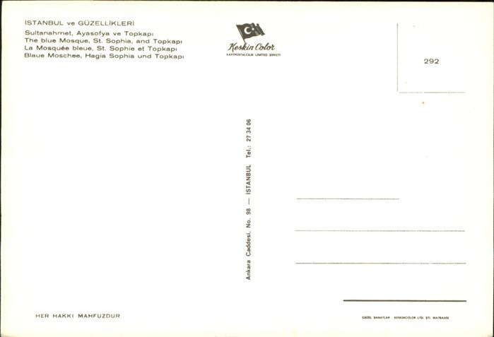 Istanbul Constantinopel Topkapi St Sophia Atakoey Bosphorus Sirkeci Fliegeraufnahme postalisch nicht gelaufen