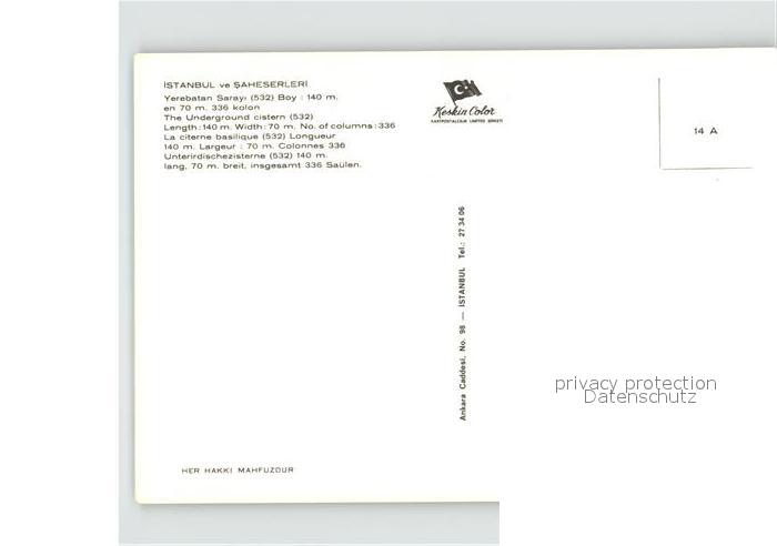 Istanbul Constantinopel Underground cistern unterirdische Zisterne postalisch nicht gelaufen Erhaltung siehe scans