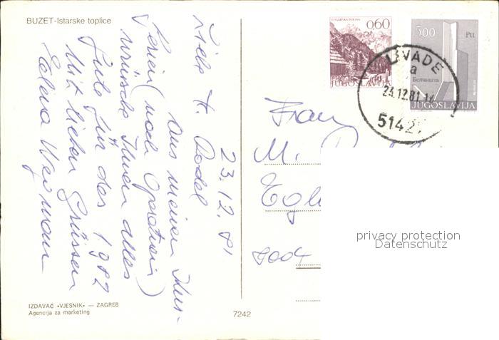 old postcard Istarske Toplice Teilansichten Felsen Swimming Pool postalisch gelaufen