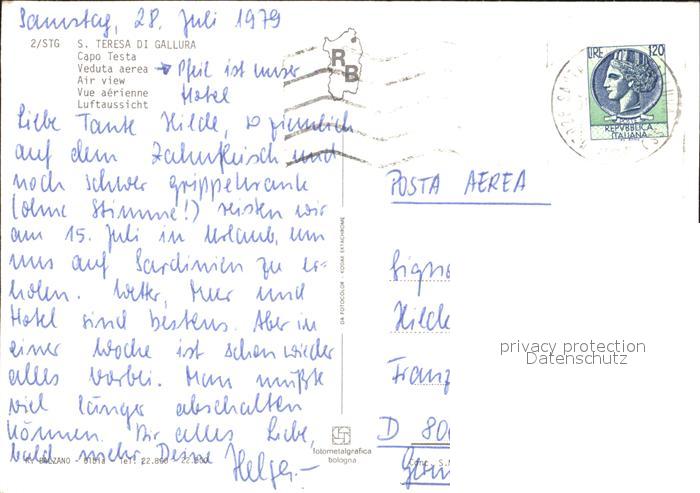 old postcard Italien Italia Italy Fliegeraufnahme Capo Testa postalisch gelaufen Erhaltung siehe scans