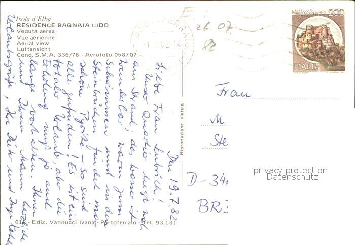 old postcard Italien Italia Italy Isola Elba Residence Bagnaia Lido Fliegeraufnahme postalisch gelaufen Erhaltung siehe scans