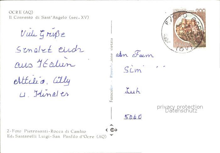 old postcard Italien Italia Italy OCRE Convento di Sant Angelo postalisch gelaufen Erhaltung siehe scans