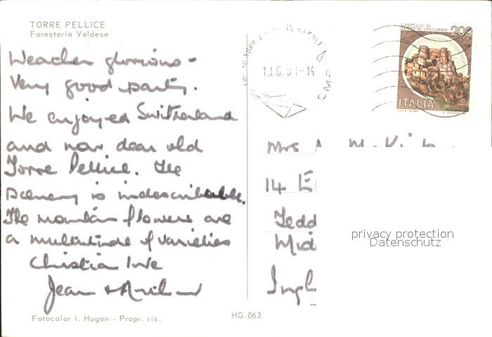 old postcard Italien Italia Italy Torre Pellice postalisch gelaufen Erhaltung siehe scans