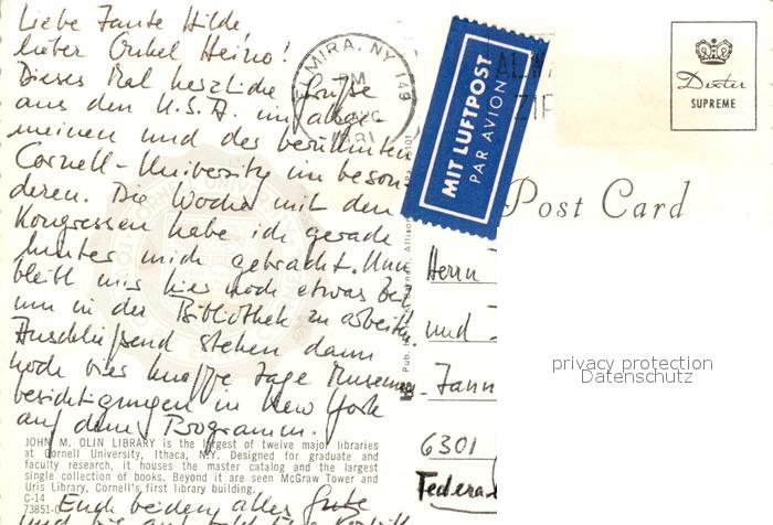73259177 old postcard Ithaca New York John M. Olin Library Cornell University postalisch gelaufen Erhaltung siehe scans [NatalD47] KatCode: 14140340000000