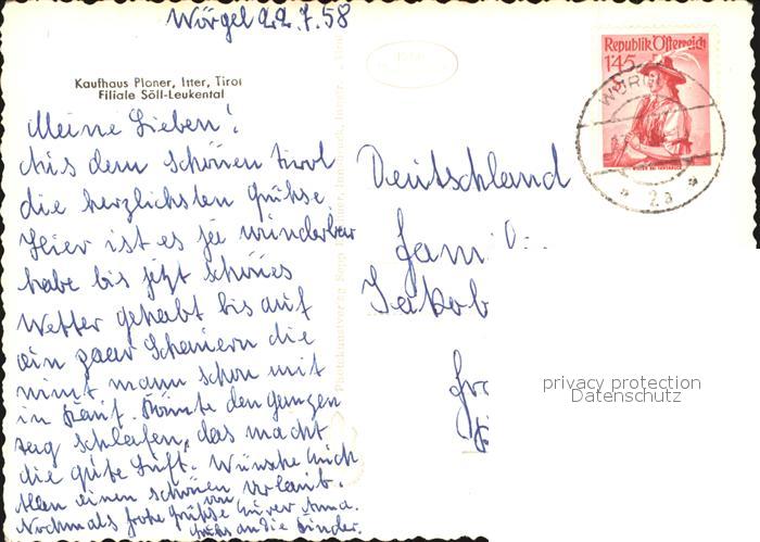 12573002 alte Postkarte Itter Tirol Pension Ploner Muehltal postalisch gelaufen Erhaltung siehe scans [WerneD78] KatCode: 11390335070407