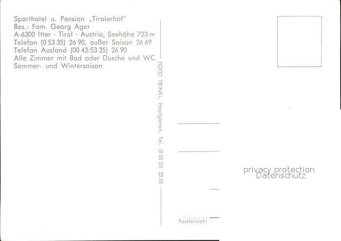 71909493 Itter Tirol Sporthotel Tirolerhof postalisch nicht gelaufen Erhaltung siehe scans KatCode: 11390335070407