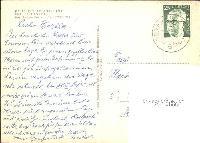 72063225 alte Postkarte Ittling Simmelsdorf Pension Sonnenhof postalisch gelaufen Erhaltung siehe scans KatCode: 11110009574158