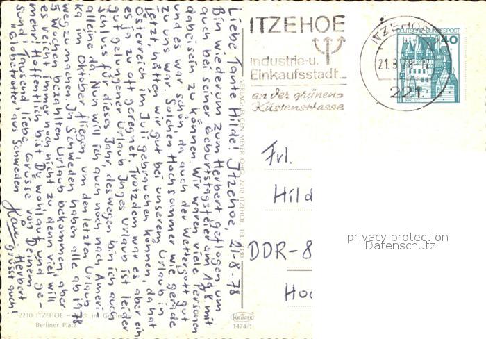 72370800 alte Postkarte Itzehoe Berliner Platz postalisch gelaufen Erhaltung siehe scans KatCode: 11110001061046